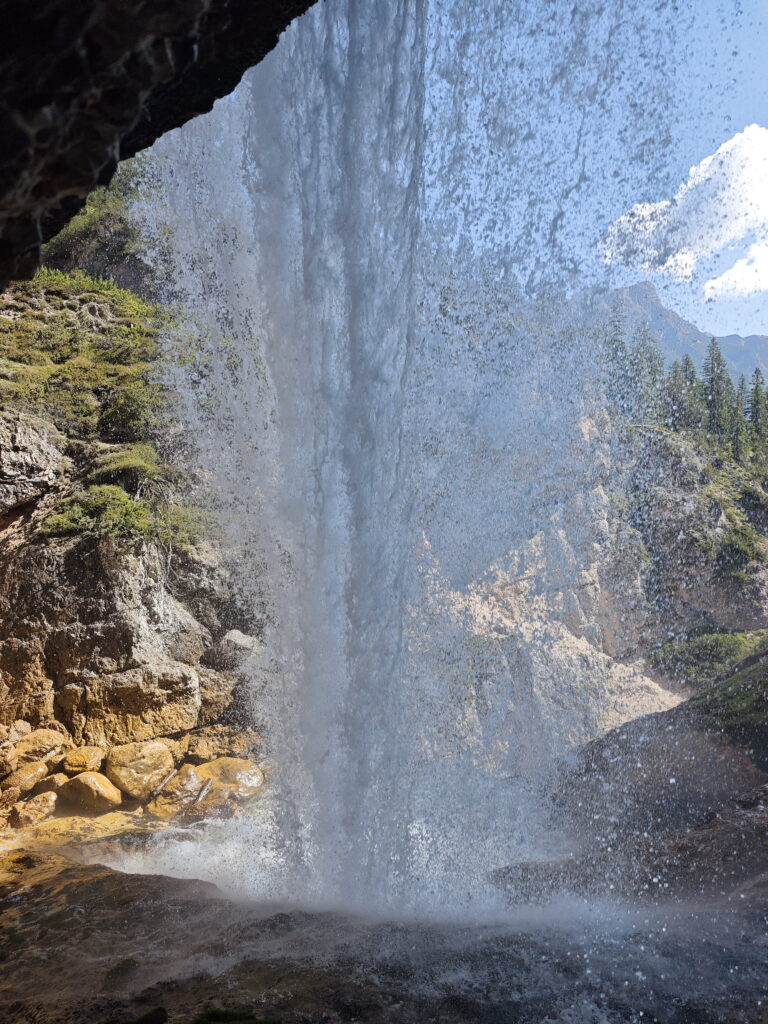 - Hauptattraktion: Das absolute Highlight ist der Abschnitt, der direkt hinter dem unteren Fanes-Wasserfall verläuft. Hier geht man durch eine Felsnische und spürt das Tosen und die Gischt des Wassers hautnah.